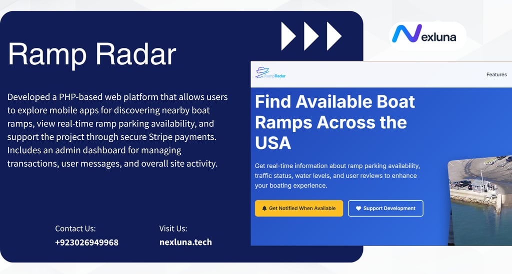 Developed a PHP-based web platform that allows users to explore mobile apps for discovering nearby boat ramps, view real-time ramp parking availability, and support the project through secure Stripe payments. Includes an admin dashboard for managing transactions, user messages, and overall site activity.